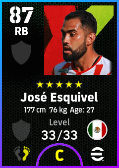 .José Esquivel is a Right Back footballer from Mexico who plays for Free in eFootball 2026.