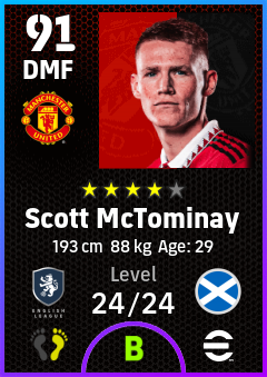 .Scott Mctominay is a Defensive Midfielder footballer from Scotland who plays for Manchester United in eFootball 2026.