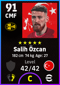 .Salih Özcan is a Center Midfielder footballer from Türkiye who plays for Borussia Dortmund in eFootball 2026.