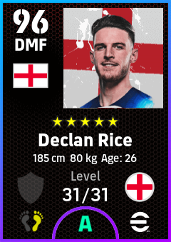 . Declan Rice is a Defensive Midfielder footballer from England who plays for England in eFootball 2026.