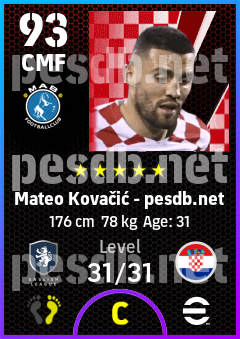 . Mateo Kovačić is a Center Midfielder footballer from Croatia who plays for Manchester B in eFootball 2026.