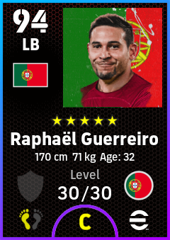 . Raphaël Guerreiro is a Left Back footballer from Portugal who plays for Portugal in eFootball 2026.