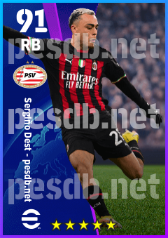 .Sergiño Dest is a Right Back footballer from United States who plays for Psv in eFootball 2026.