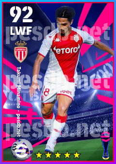 . Takumi Minamino is a Left Wing Forward footballer from Japan who plays for As Monaco in eFootball 2026.