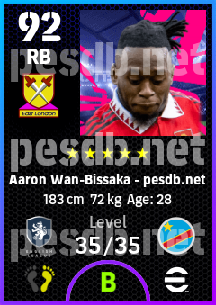 . Aaron Wan-Bissaka is a Right Back footballer from Congo Dr who plays for West Ham Rb in eFootball 2026.