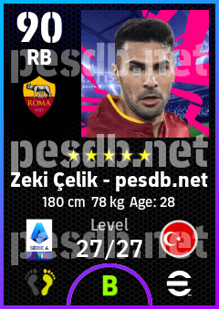 . Zeki Çelik is a Right Back footballer from Türkiye who plays for Roma Gr in eFootball 2026.