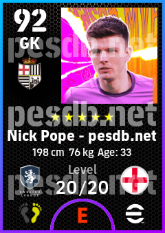 . Nick Pope is a Goalkeeper footballer from England who plays for Newcastle Wb in eFootball 2026.
