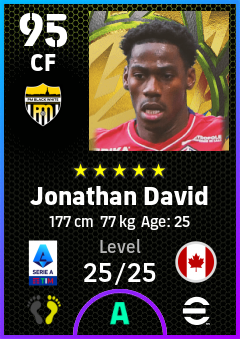 .Jonathan David is a Center Forward footballer from Canada who plays for Piemonte Bn in eFootball 2026.