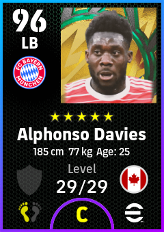 .Alphonso Davies is a Left Back footballer from Canada who plays for München Rw in eFootball 2026.
