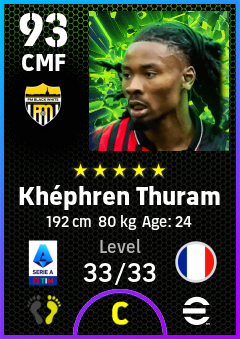 . Khéphren Thuram is a Center Midfielder footballer from France who plays for Piemonte Bn in eFootball 2026.