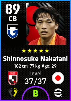 .Shinnosuke Nakatani is a Center Back footballer from Japan who plays for Gamba Osaka in eFootball 2026.