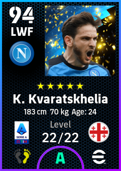 . K. Kvaratskhelia is a Left Wing Forward footballer from Georgia who plays for Napoli A in eFootball 2026.