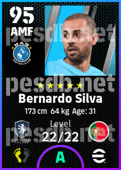 . Bernardo Silva is a Attacking Midfielder footballer from Portugal who plays for Manchester B in eFootball 2026.