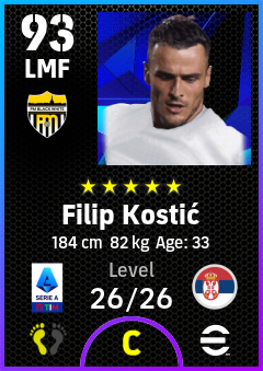 . Filip Kostić is a Left Midfielder footballer from Serbia who plays for Piemonte Bn in eFootball 2026.