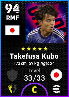 . Takefusa Kubo is a Right Midfielder footballer from Japan who plays for Japan in eFootball 2026.