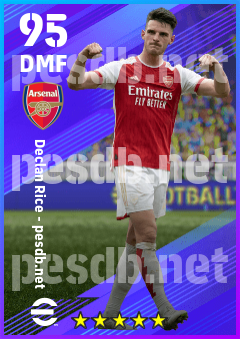 . Declan Rice is a Defensive Midfielder footballer from England who plays for Arsenal Fc in eFootball 2026.
