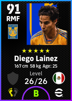 .Diego Lainez is a Right Midfielder footballer from Mexico who plays for Tigres Uanl in eFootball 2026.
