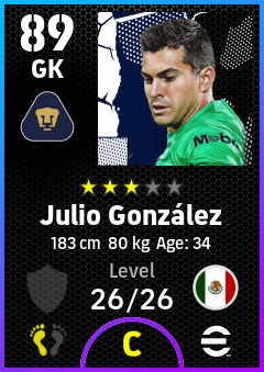 .Julio González is a Goalkeeper footballer from Mexico who plays for Pumas in eFootball 2026.