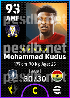 . Mohammed Kudus is a Attacking Midfielder footballer from Ghana who plays for Tottenham Wb in eFootball 2026.