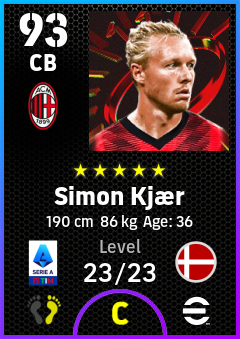 . Simon Kjær is a Center Back footballer from Denmark who plays for Ac Milan in eFootball 2026.