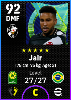 .Jair is a Defensive Midfielder footballer from Brazil who plays for Cr Vasco Da Gama in eFootball 2026.
