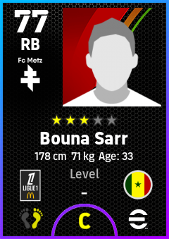 . Bouna Sarr is a Right Back footballer from Senegal who plays for Fc Metz in eFootball 2026.