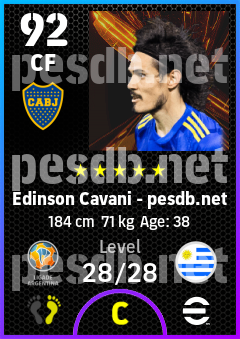 .Edinson Cavani is a Center Forward footballer from Uruguay who plays for Ca Boca Juniors in eFootball 2026.