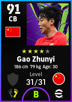 . Gao Zhunyi is a Center Back footballer from China Pr who plays for Free in eFootball 2026.