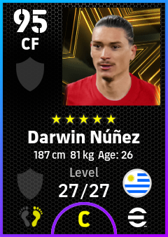 . Darwin Núñez is a Center Forward footballer from Uruguay who plays for Free in eFootball 2026.
