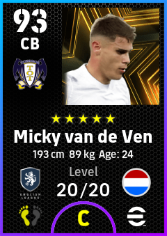 . Micky Van De Ven is a Center Back footballer from Netherlands who plays for Tottenham Wb in eFootball 2026.