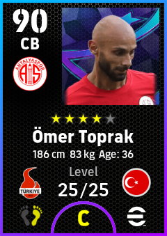 .Ömer Toprak is a Center Back footballer from Türkiye who plays for Antalyaspor in eFootball 2026.
