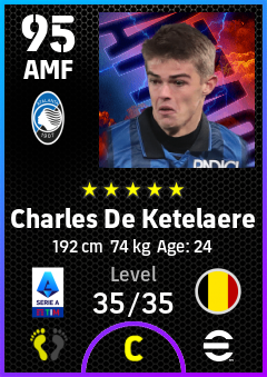 . Charles De Ketelaere is a Attacking Midfielder footballer from Belgium who plays for Atalanta Bc in eFootball 2026.