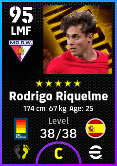 . Rodrigo Riquelme is a Left Midfielder footballer from Spain who plays for Madrid Rosas Rb in eFootball 2026.