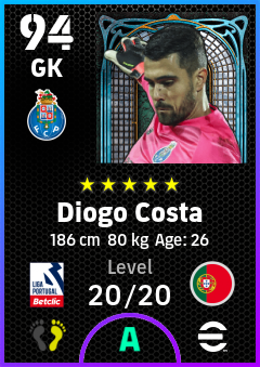 .Diogo Costa is a Goalkeeper footballer from Portugal who plays for Fc Porto in eFootball 2026.