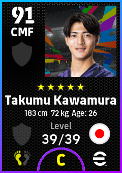 . Takumu Kawamura is a Center Midfielder footballer from Japan who plays for Free in eFootball 2026.