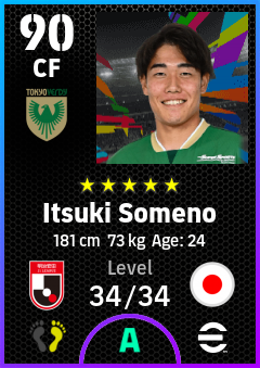 .Itsuki Someno is a Center Forward footballer from Japan who plays for Tokyo Verdy in eFootball 2026.