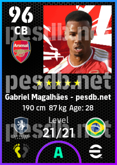 . Gabriel Magalhães is a Center Back footballer from Brazil who plays for Arsenal Fc in eFootball 2026.