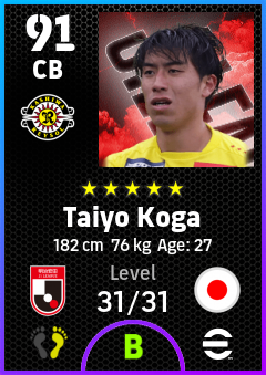 .Taiyo Koga is a Center Back footballer from Japan who plays for Kashiwa Reysol in eFootball 2026.