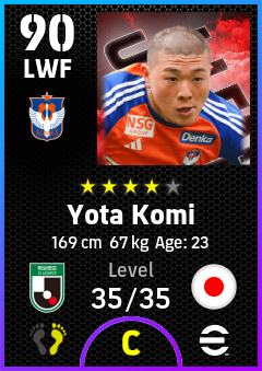 .Yota Komi is a Left Wing Forward footballer from Japan who plays for Albirex Niigata in eFootball 2026.