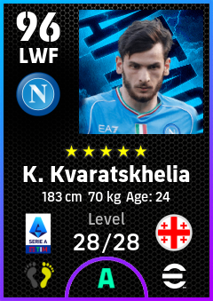 . K. Kvaratskhelia is a Left Wing Forward footballer from Georgia who plays for Napoli A in eFootball 2026.