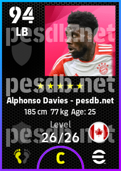 .Alphonso Davies is a Left Back footballer from Canada who plays for Free in eFootball 2026.