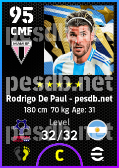 .Rodrigo De Paul is a Center Midfielder footballer from Argentina who plays for Miami Bp in eFootball 2026.