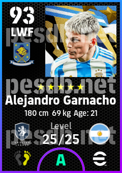 .Alejandro Garnacho is a Left Wing Forward footballer from Argentina who plays for Chelsea B in eFootball 2026.