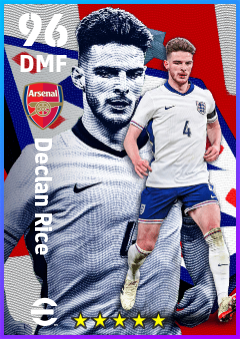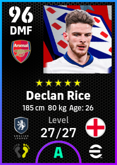 . Declan Rice is a Defensive Midfielder footballer from England who plays for Arsenal Fc in eFootball 2026.