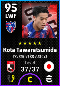 .Kota Tawaratsumida is a Left Wing Forward footballer from Japan who plays for Fc Tokyo in eFootball 2026.
