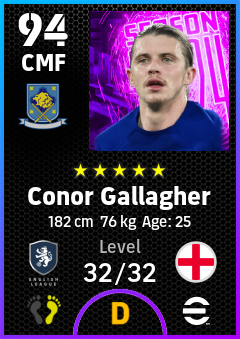 . Conor Gallagher is a Center Midfielder footballer from England who plays for Chelsea B in eFootball 2026.