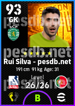 .Rui Silva is a Goalkeeper footballer from Portugal who plays for Sporting Cp in eFootball 2026.