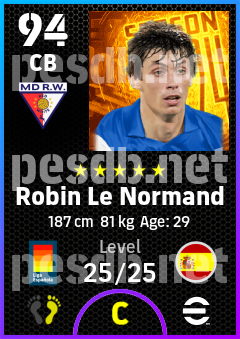 . Robin Le Normand is a Center Back footballer from Spain who plays for Madrid Rosas Rb in eFootball 2026.