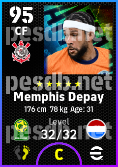 .Memphis Depay is a Center Forward footballer from Netherlands who plays for Sc Corinthians Paulista in eFootball 2026.
