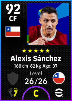 . Alexis Sánchez is a Center Forward footballer from Chile who plays for Chile in eFootball 2026.
